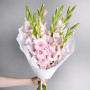 На фото букет из 9 розовых гладиолусов. В составе: гладиолус 9 шт, дизайнерская упаковка 1 шт, . Все цветы свежие и ароматные, букет красиво оформлен и отлично подходит для подарка. Доступна доставка цветов или самовывоз.
