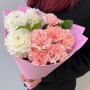 Букет из белых георгин и розовых гвоздик в Лениногорске