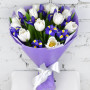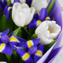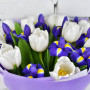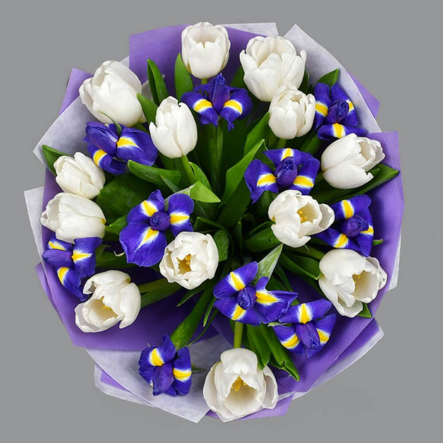Букет из синих ирисов и белых тюльпанов в Лениногорске