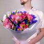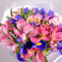 Букет из синих ирисов из розовых альстромерий в Лениногорске