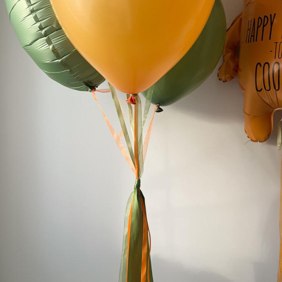 Состав композиции: - фонтан из 4 латексных шариков ( 30 см) , 1 латексный шарик с пенопластом ( 30 см), 2 фольги рванных круга ( 46 см) - фольгированный кот (66 см)
